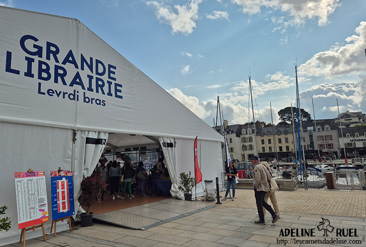 Le week-end, je dédicace mes livres sous le grand chapiteau près du port de Vannes.