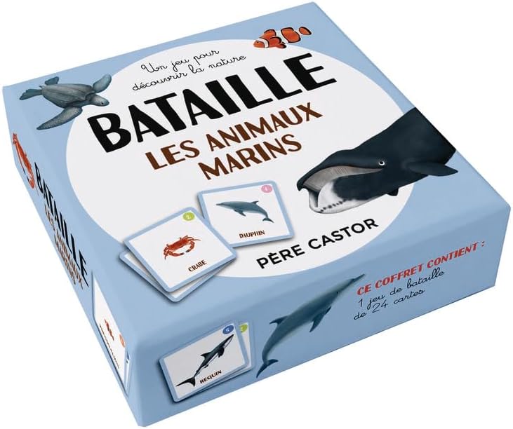 Début avril, sortent 2 nouveaux titres dans ma collection de petits jeux chez Flammarion Père castor : Bataille- Animaux marins et Dominos – fruits et légumes.