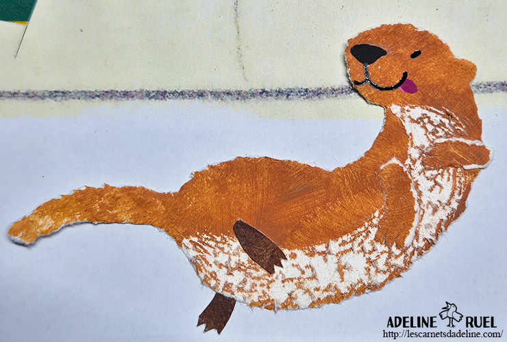 Je commence l’année avec un chouette projet d’album à paraître en mai 2026 aux éditions d’eux ! Alors je peins, je déchire, je gratte, je dessine. Elle est pas trop mignonne cette petite loutre ?