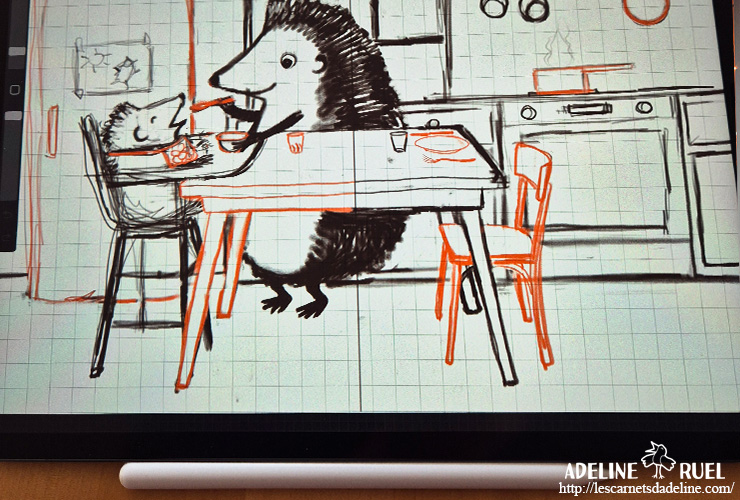 Fin janvier, je travaille sur un nouveau titre de ma collection d’imagier à jouer qui sortira en octobre 2025 chez Casterman. Cette fois-ci je travaille en numérique sur mon Ipad. Voici un croquis réalisé sur Procreate.