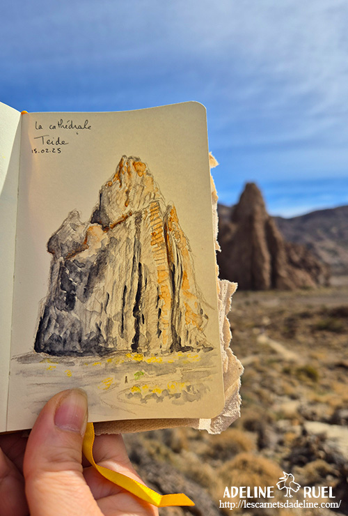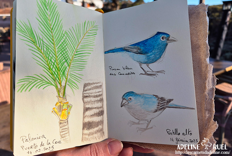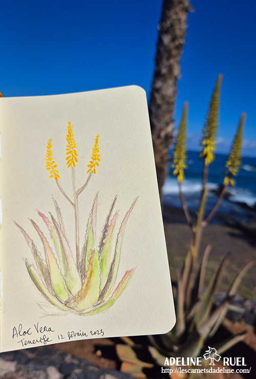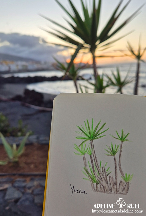 J’ai la chance de partir une semaine avec mes parents, mon frère et ma marraine à Ténérife. Habituellement, je faisais chaque soir un article relatant mon voyage, cela me prenais un temps fou ! Je ne suis pas aussi rodé et rapide que mes parents 😉 Alors cette année, pas d’ordinateur, juste un carnet de croquis et mes crayons. J’entame ainsi mon premier petit carnet de voyage.
